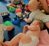 Mit Sinnes- und Bewegungsanregungen, Spielen und Liedern begleiten wir die Kinder bei ihrer rasanten und spannenden Entwicklung im ersten Lebensjahr. Wir geben den Babys die Möglichkeit, sich in ihrem eigenen Tempo zu bewegen und ihre Welt zu erforschen und lernen sie durch geziehltes Beobachten besser kennen.